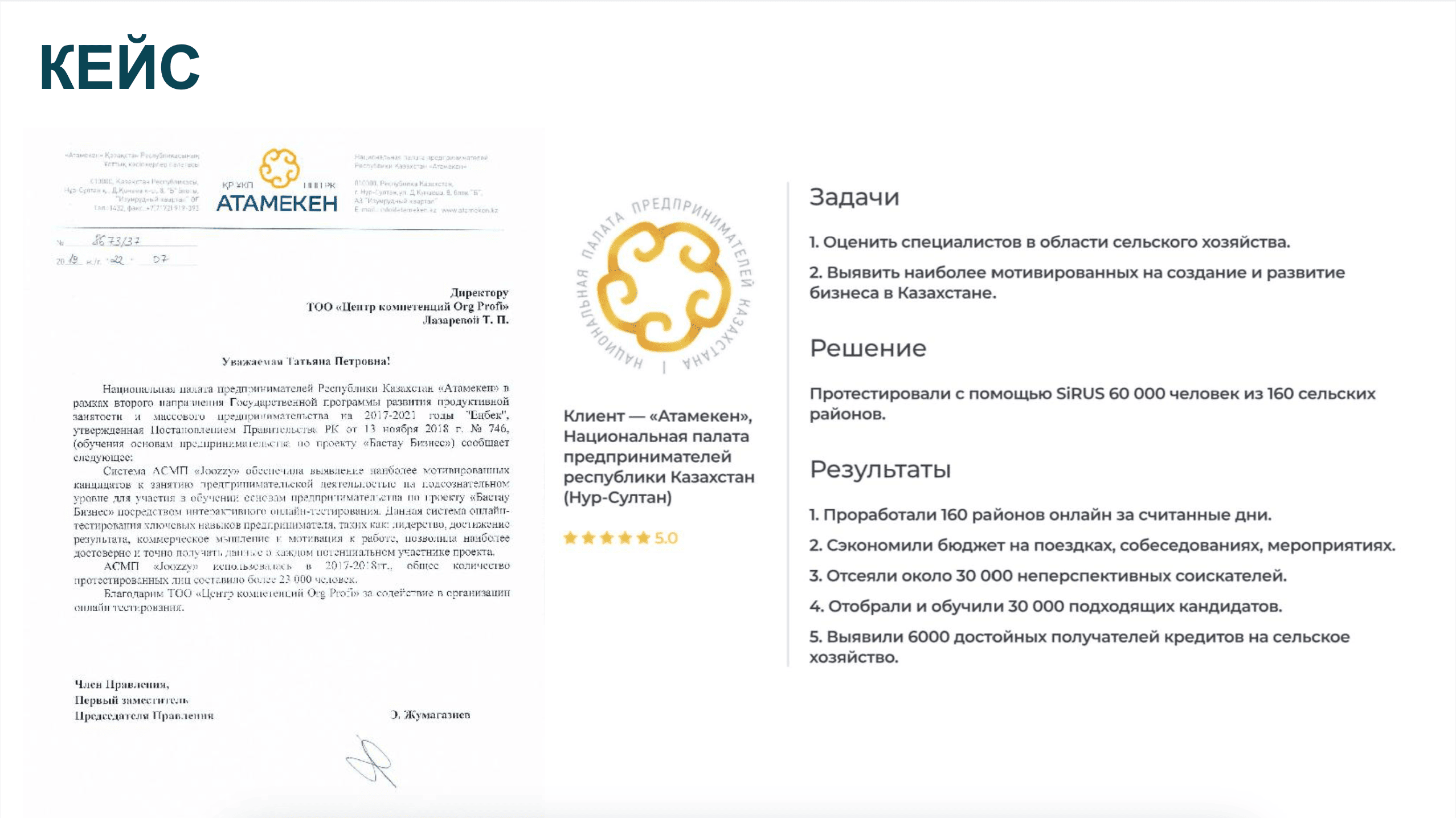 Получайте готовый, легко интерпретируемый отчет по каждому человеку в течение часа. Принимайте кадровые решения, основанные на данных, а не на интуиции.